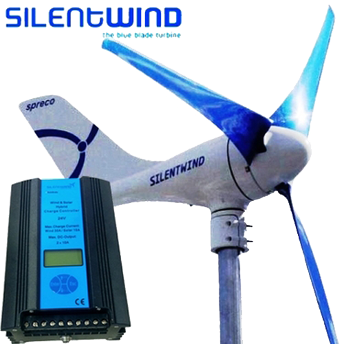 Ανεμογεννήτρια Silentwind 24V 450W+, με νέο σχεδιασμό πτερυγίων για αθόρυβη λειτουργία. Μέση παραγόμενη ενέργεια το μήνα στα 6 m/s 45 kWh. Κατάλληλη για εφαρμογές κοντά σε θάλασσα.