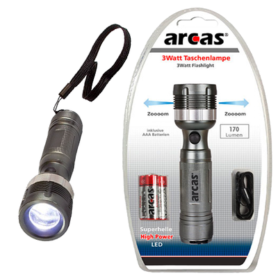 Φακός με LED υψηλής φωτεινότητας 170 Lumen. Με ρυθμιζόμενη δέσμη (ZOOM), και IP67 αδιάβροχος Περιλαμβάνει μπαταρίες αλκαλικές 3xLR03(AAA).