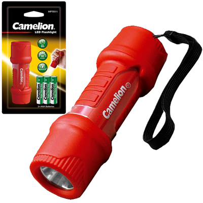 Φακός CAMELION 1 Watt υψηλής φωτεινότητας. Αντοχή από πτώση ύψους 3 μέτρων, έως 40 ώρες φωτισμού. O-ring δαχτυλίδι και στεγανός διακόπτης το καθιστούν στεγανό και ανθεκτικό στα νερά. Χρησιμοποιεί μπαταρίες ΑΑΑ (περιλαμβάνονται στη συσκευασία)