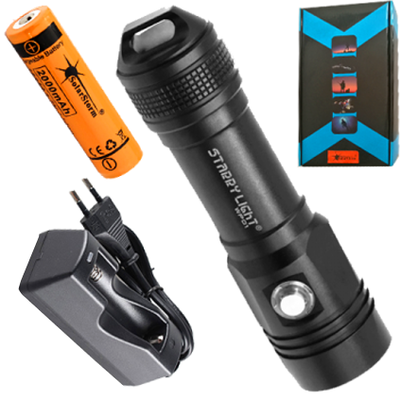 WP01 Σετ καταδυτικού φακού με μπαταρία και εξωτερικό φορτιστή. Για χρήση σε βάθος έως και 50 μέτρα.