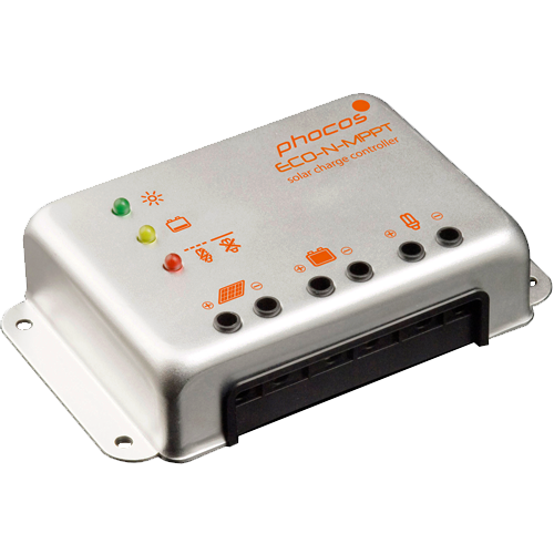 ECO-N-MPPT is the intelligent, cost-effective choice for low-power applications that require maximum charging efficiency. Phocos’ high-performance maximum power point tracking (MPPT) algorithm ensures optimal charging current from your panel/array in all conditions. This results in up to 30% higher power yield than conventional PWM charge controllers. This added efficiency paired with Phocos’ precision 4-stage, temperature-compensated (external temperature sensor included) charge regime significantly extends battery lifespan, reducing number of battery replacements over the useable life of the system.