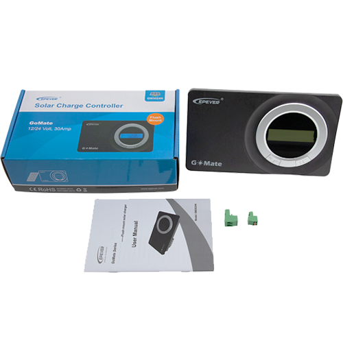 Έτσι αν ψάχνετε για έναν αποτελεσματικό ελεγκτή χρέωσης, για φυσικά περιορισμένο χώρο και ολοκληρωμένη εμφάνιση, το GoMate είναι η σωστή επιλογή για εσάς! Το GoMate είναι ένας ελεγκτής ηλιακής φόρτισης με αρνητική γείωση 30Α, εξοπλισμένος με λειτουργία φόρτισης κατά Pulse Width Modulated (PWM). Το GoMate ρυθμίζει το φωτοβολταϊκό ρεύμα και προστατεύει τις μπαταρίες από υπερβολική φόρτιση. Είναι συμβατό με φωτοβολταϊκά συστήματα 12-24 Volt και μπορεί να εφαρμοστεί σε οποιοδήποτε ηλιακό σύστημα εκτός δικτύου, όπως οχήματα αναψυχής (RV), οχήματα κινητής υπηρεσίας, ηλιακά σκάφη κ.λπ.