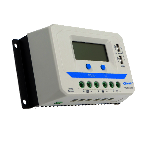 Ρυθμιστής φόρτισης 30Α από την EPsolar με οθόνη LCD. Κατάλληλος για αυτόνομα συστήματα 12V / 24V. Η νέα σειρά ρυθμιστών VS-AU  εκπληρώνουν καλύτερα τις απαιτήσεις των συστημάτων, διαθέτουν διπλή έξοδο USB για οποιαδήποτε χρήση, μεγάλη οθόνη LCD ώστε να μπορείτε να ενημερώνεστε για όλες τις καταστάσεις λειτουργίας με τη χρήση συμβόλων, καθώς και γραφική αναπαράσταση της κατάστασης φόρτισης με χρήση κλίμακας. Άλλα δεδομένα όπως τάση, ρεύμα αναπαρίστανται ψηφιακά.