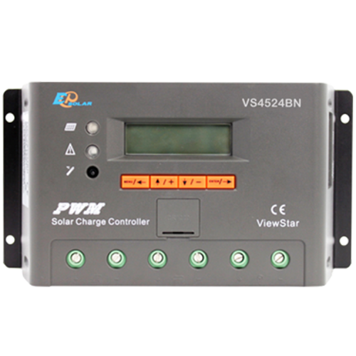 Ρυθμιστής φόρτισης PWM για συστήματα φωτοβολταϊκών, με τάση 12/24V και ρεύμα 45Α. Διαθέτει οθόνη LCD, με ενδείξεις για τάση, ένταση, θερμοκρασία κ.α, καθώς και δυνατότητα φόρτισης μπαταριών με ρύθμιση χρόνου.
